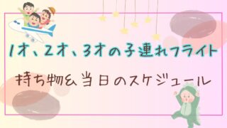 子育て 1才・2才・3才の子連れフライト 持ち物&当日のスケジュール こんにちは、ちびママです。『乳幼児と一緒の、初めての飛行機旅行をスムーズにすすめられるか』不安に感じるパパ・ママもいらっしゃるのではないでしょうか。私もその1人で、子どもが当時1才1か月の初フライトのときは、ブログやネットでたくさん下調べを... 2026.01.15 子育て